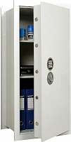 Модель WEGA-80-380 EL оснащается двумя полками, которые легко вынуть или установить на нужную высоту. На сейф наносится белое структурированное покрытие порошкового типа, предохраняющее от мелких царапин. Сейф полностью утапливается в стену, для чего потребуется глубина ниши не менее 48 см.
